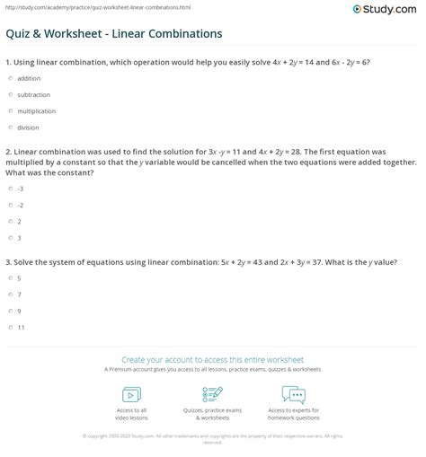 Understanding Linear Combination Worksheet 2 Answers